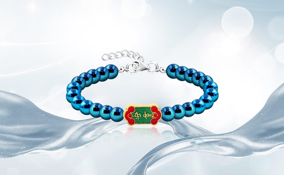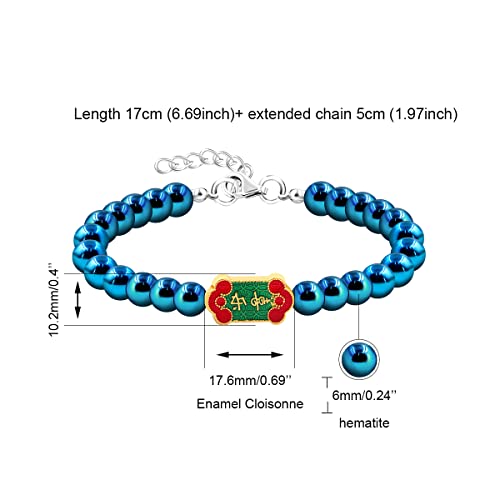 Uloveido - اولوفيدو اساور من خرز الهيماتايت الطبيعي العلاجي لتخفيف التوتر للنساء صينية تقليدية بافضل التمنيات والحظ السعيد والفتيات Y1981 حجر هيماتايت