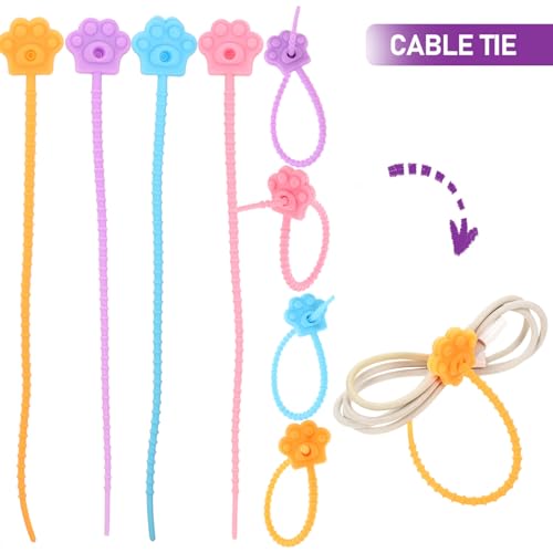 ULTECHNOVO - أربطة بسوستة كبيرة للغاية 20 قطعة، منظم على شكل حافظة كابلات، سوار ربط من السيليكون، حامل بشكل مخالب قطة مرن قابل لإعاذة الاستخدام، أربطة الأسلاك متعددة الأغراض بسوستة لأسلاك البيانات