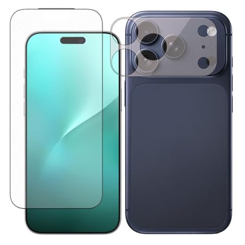 Whats Mob - مجموعة الحماية المتكاملة 2 في 1 مع واقي شاشة زجاجي مع فلتر مضاد للغبار وإطار حماية للكاميرا (لا يغطي العدسات) متوافقة مع آيفون 17 برو