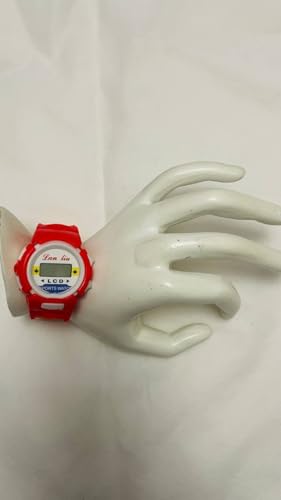 Generic - ساعة رقمية ال سي دي من التيميت سبورت، سوار بلاستيكي احمر، مقاومة للصدمات، هيكل دائري، تصميم رياضي مع وظيفة التقويم، تعمل بالبطارية، للجنسين