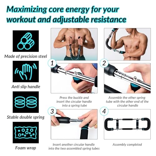 JOOVCC - جهاز تدريب الذراع من التيميت تويستر، جهاز تدريب الصدر والذراع محمول قابل للتعديل مع مقاومة زنبركية من 18-45 كجم، معدات لياقة بدنية للجزء العلوي من الجسم قابلة للإزالة للمنزل والملاءمة