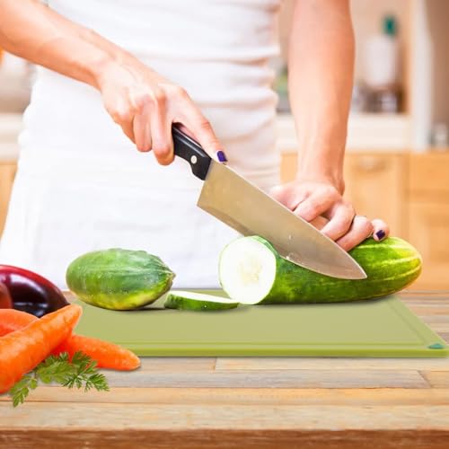 - 【سهولة التنظيف】سطح قطع غير مسامي وقوي للغاية لطيف على أدوات المائدة والسكاكين وسهل التنظيف. سطحنا متين بما يكفي لتحمل التقطيع والفرم والتقطيع إلى مكعبات والسكاكين الحادة، ولن يحتفظ بالبقع أو الروائح للاستخدام لفترة طويلة.