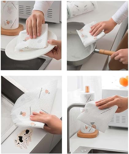 AREXOL - بكرة فوط مطبخ فائقة الامتصاص وقابلة للغسيل، 50 منديل مبلل مطبوع قابل لإعادة الاستخدام لتنظيف الزيوت والشحوم والانسكابات، أقمشة تنظيف متعددة الأغراض صديقة للبيئة للمنزل والمطبخ