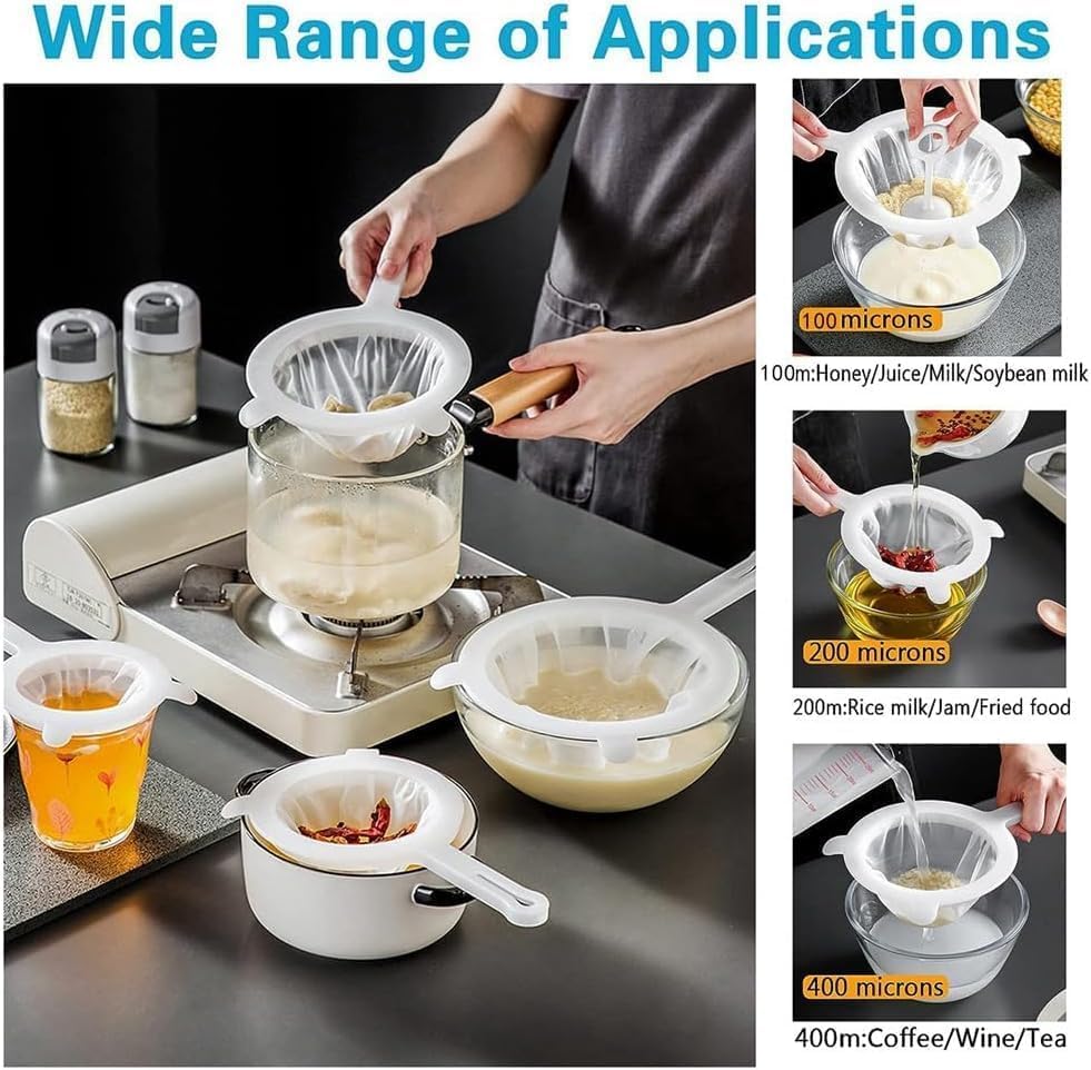 - تخلص من مشاكل نفايات الحبوب. مناسب للترشيح الثانوي للمشروبات ومياه الينابيع الجبلية والبيجيو والإنزيم وما إلى ذلك. سهولة التنظيف: فلتر سهل التنظيف للغاية. بعد كل استخدام، يمكنك غسلها بالماء. حتى في حال وجود بقع، يمكن تنظيفها بسهولة باستخدام الماء والصابون، مما يجعلها عملية جدًا، نطاق استخدام واسع: يمكن استخدام مصفاة الطعام في مجالات متعددة مثل الطب والطعام وغيرها، حيث تُسهِّل تصفية الحليب والعصائر والنبيذ وحليب الصويا وغيرها من السوائل.