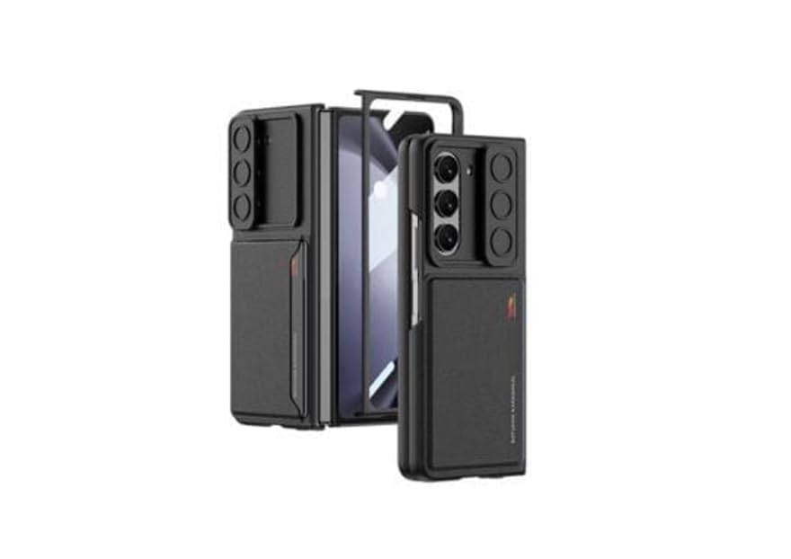 - حافظة جلدية فائقة الملاءمة لهاتف سامسونج جالاكسي Z فولد 6 رفيع | حافظة حماية من الجلد الصناعي والبولي كربونات الصلب لهاتف جالاكسي Z فولد 6 للرجال والنساء