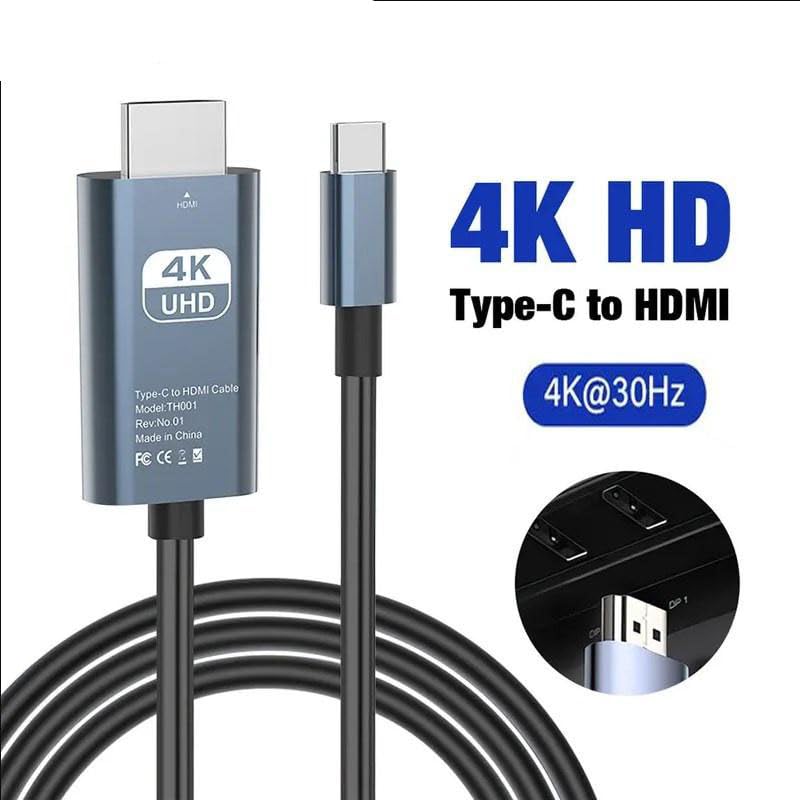 Generic - كابل بطول 2 متر نوع USB Type-C إلى HDMI متوافق مع أجهزة اللابتوب والتابلت والهواتف الذكية المزودة بمنفذ USB-C