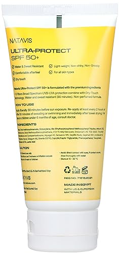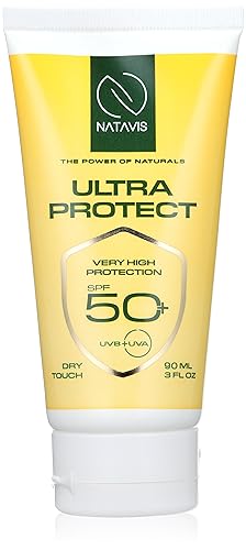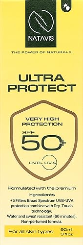 - كريم واقي شمسي الترا بروتيكت من ناتافيس بعامل حماية من أشعة الشمس 50+ مقاوم للماء والعرق (60 دقيقة). تركيبة غير معطرة.
