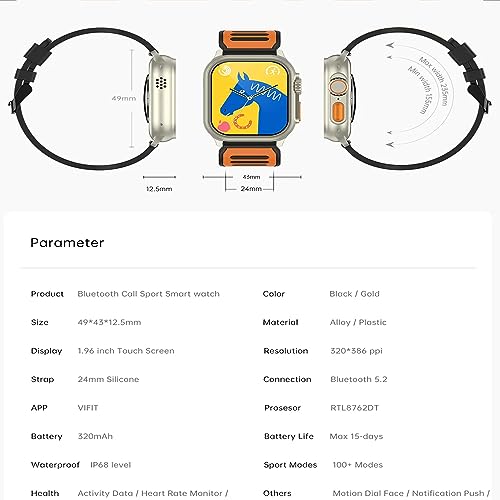 Generic - ساعة سمارت الترا تعمل باللمس شاشة 1.96 بوصة HD عالية الدقة مزود بتقنية NFC ومقاومة للماء / موديل DV02 – لون اسود