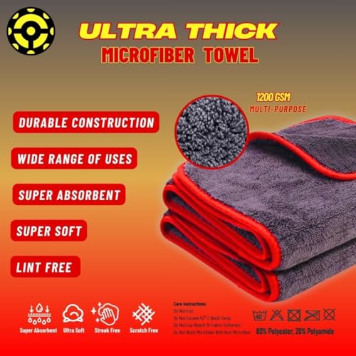 Generic - فوطة مايكروفايبر فائقة السماكة للسيارة عالية الامتصاص بسمك 1200 جم/م² بتصميم مضاد للوبر والخدش، لون رمادي، مقاس 40 × 40 سم