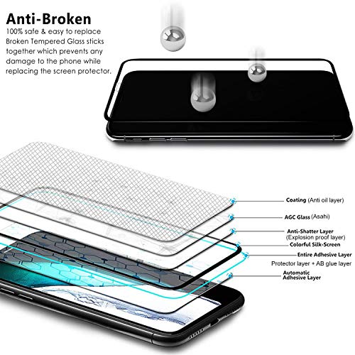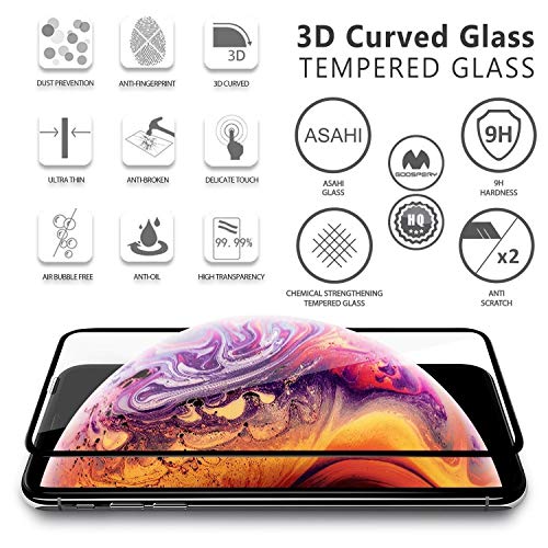 Generic - شاشة حماية 3D زجاجية كاملة رفيعة جدًا بحواف منحنية لموبايل ايفون 11 برو، درجة صلابة ماكس 9H، مقاومة للانفجار، زجاج اساهي مقوى، شفافة وعالية الوضوح، لون اسود