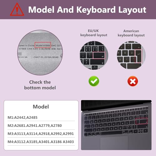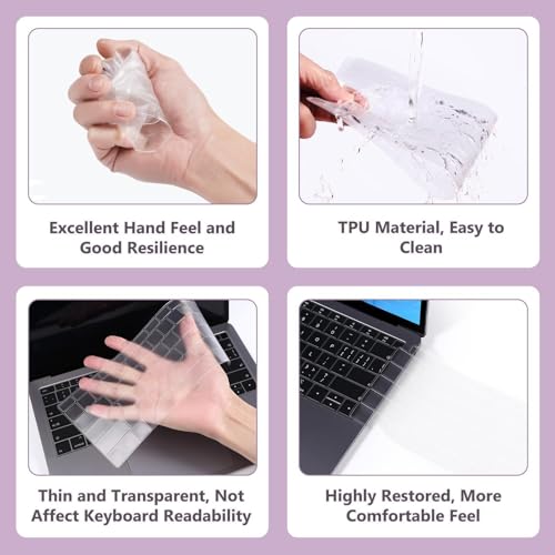 QTMMC - غطاء كيبورد رفيع للغاية لجهاز ماك بوك برو 14/16 انش (M4/M3/M2/M1 برو/ماكس، 2021-2024)، ماك بوك اير 13.6 انش (M2/M3، 2022 2024)، ماك بوك اير 15 انش (M2/M3، 2023-2024) EU/تخطط المملكة المتحدة تخطيط