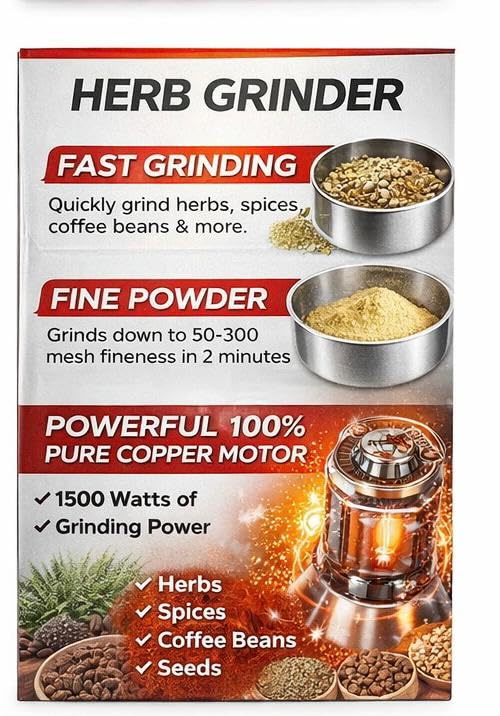 - محرك قوي 1500 واط: يوفر المحرك عالي السرعة طحنًا سريعًا وفعالًا للأعشاب والتوابل وحبوب القهوة والبذور والحبوب والمكونات الجافة بأداء احترافي في ثوانٍ