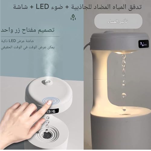 Generic - موزع روائح عطرية بالموجات فوق الصوتية ومرطب للهواء مضاد للجاذبية بتصميم مبتكر مزود بشاشة ال اي دي وخاصية الحماية من الإغلاق ووضع إضاءة للمنزل وغرفة النوم والمكتب 3 في 1- أبيض