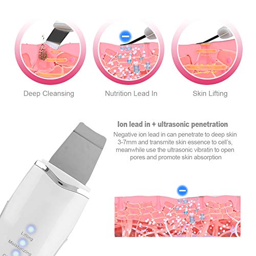 - 【3 أوضاع وظيفية】 3 أوضاع وظيفية لجعل بشرتك نظيفة وناعمة. توفر بشرة الوجه بالموجات فوق الصوتية 25000 هرتز في الدقيقة من الموجات فوق الصوتية التي تطلق المسام المسدودة بشكل فعال وتقشر البشرة لإزالة خلايا الجلد الميتة. كل ذلك بدون أي ألم.
