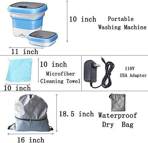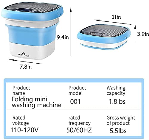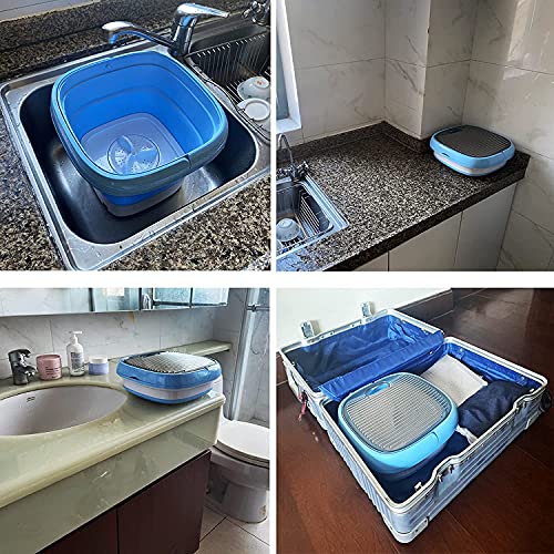 Spaceshoop - غسالة صغيرة محمولة تعمل بالموجات فوق الصوتية قابلة للطي وموفرة للطاقة للغاية مع شنطة ومنشفة، 10 وات، لون ازرق، تحميل علوي، 0.8 كيلوجرام