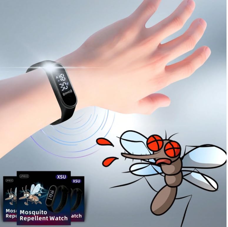 - تقنية متقدمة: تستخدم الساعة الموجات الصوتية لطرد البعوض بدون استخدام أي مواد كيميائية، مما يجعلها آمنة للاستخدام