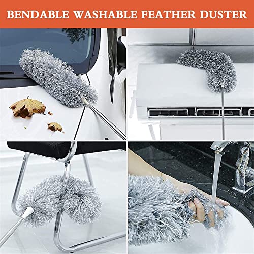 ULTRINA - منفضة تنظيف غبار قابلة للطي من الألياف الدقيقة بهيكل معدني مرن لتنظيف سريع وسهل للمنزل والمطبخ والسيارة والسقف ومروحة المكتب مع قضيب طويل من الترينا