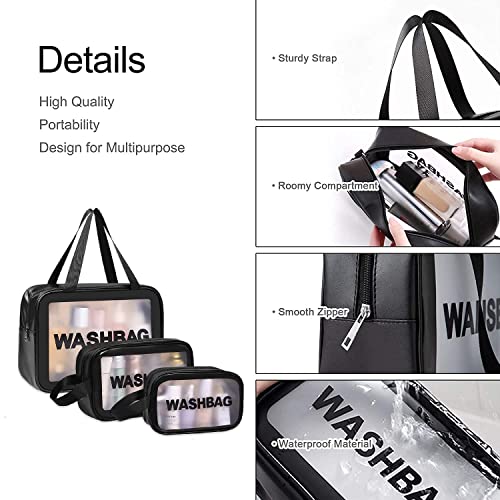 Umadiya - شنطة مكياج متعددة الوظائف للنساء من اوماديا® | شنط مستحضرات تجميل بلاستيك PVC مقاومة للماء للبنات | غسيل وتخزين ادوات الزينة | منظم سفر لاكسسوارات الحمام وادوات التزيين مجموعة 3 قطع اسود