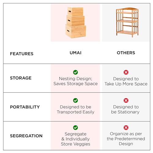 UMAI - يوماي حاوية تخزين من الخيزران والبطاطس والبصل والثوم | سلة خضروات للمطبخ | منظم | | صندوق | مجموعة 3 قطع 16.5 × 11 سم 20 12.7 و23 15