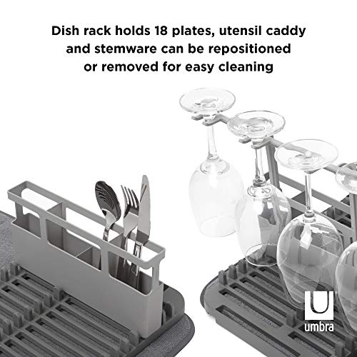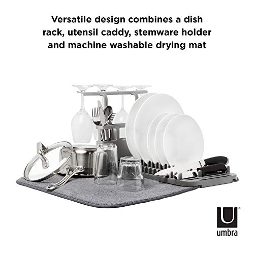 Umbra - رف ومجفف أطباق مايكروفايبر يودراي بتصميم موفر للمساحة وخفيف الوزن يُطوى لسهولة التخزين، قياسي من اومبرا، (رمادي داكن)