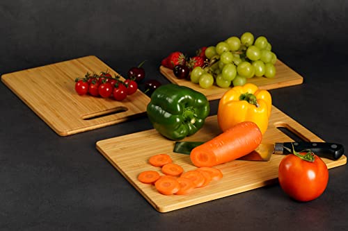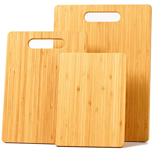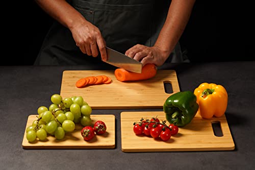 Umilife - مجموعة ألواح تقطيع من البامبو للمطبخ، لوح جبن تشاركوتيري، هيكل متين من 3 طبقات مع مقابض، لوح تقطيع خشبي رفيع وخفيف للغاية، 3 قطع من اميليف