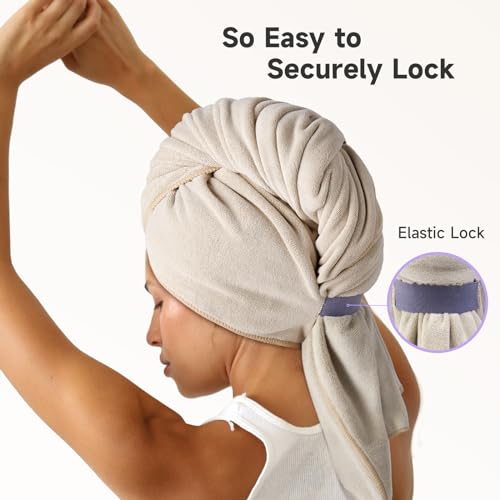 Umisleep - اميسليب منشفة شعر من المايكروفايبر بنسبة 100%، منشفة شعر مطورة فائقة الامتصاص من المايكروفايبر، منشفة شعر ملفوفة فائقة النعومة مضادة للتجعد، 41 انش × 30 انش، منشفة شعر مجعد كبيرة جدا للنساء للشعر