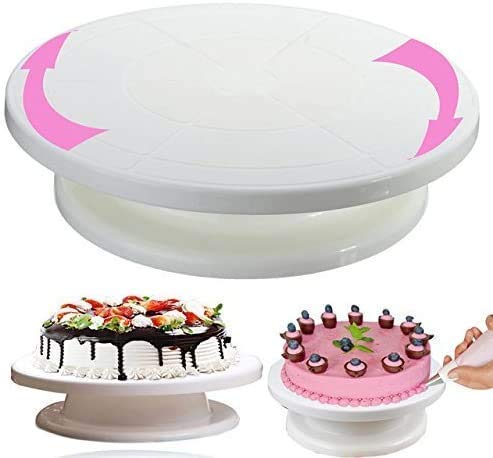 Generic - أدوات كيك دائرية سهلة الدوران من يو ام ميا انتربرايز حامل دوار لتزيين الكيك 360 درجة سهل قرص 28 سم أبيض مستدير بلاستيك