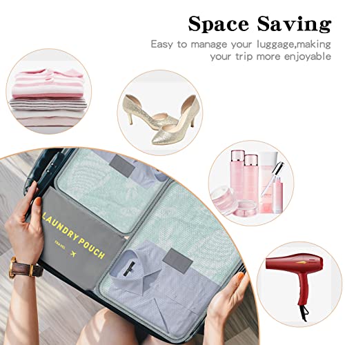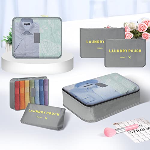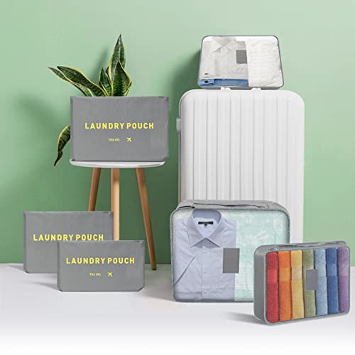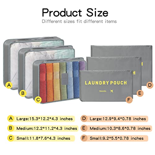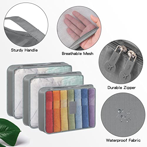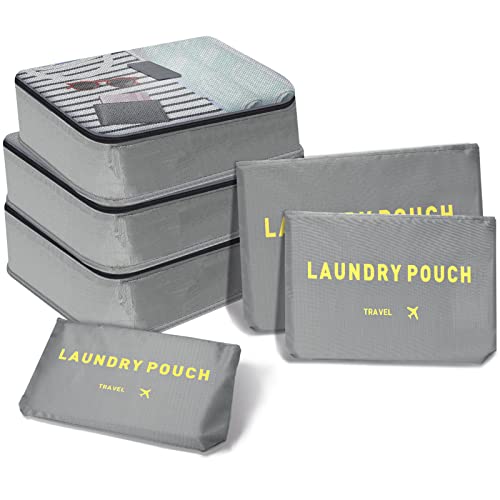 Unaone - مجموعة من 6 مكعبات تعبئة للسفر من Unaone ، منظم حقائب تخزين متعددة أحجام حقائب السفر حقيبة ضغط خفيفة الوزن ، رمادي، نايلون، من يونون
