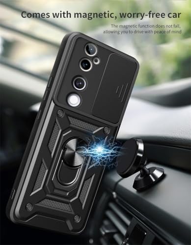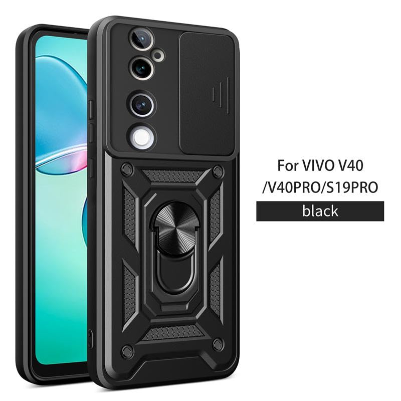 UNBLACK - جراب حماية خلفي لموبايل فيفو V40 5G وV40 برو شبكة الجيل الخامس 5G، بغطاء منزلق للكاميرا وحامل حلقي مدمج مضاد للصدمات من انبلاك (أسود، فيفو V40 برو 5G، وفيفو V40 5G وS19 برو 5G