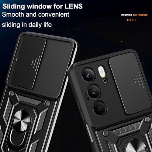 UNBLACK - جراب حماية مقاوم للصدمات من البولي يوريثين الحراري والبولي كربونات بغطاء منزلق متوافق مع موبايل ريلمي C75 من انبلاك، أسود