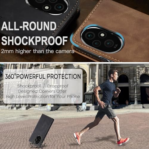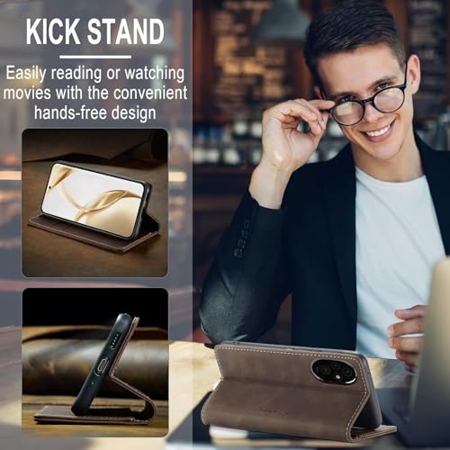 Generic - جراب موبايل متعدد الوظائف قابل للطي بشكل أفقي مزود بفتحة للبطاقات وحامل ومحفظة متوافق مع موبايل هونر 200 برو من انبلاك (لون بني (كوفي))