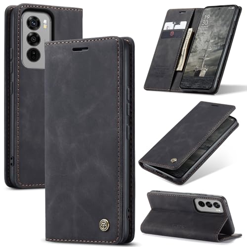 Generic - جراب حماية جلد قابل للطي بتصميم مبتكر وأنيق بشكل أفقي متعدد الوظائف مع حافظة كروت ومحفظة وحامل لموبايل أوبو رينو شبكة الجيل الخامس 5G - أسود
