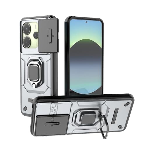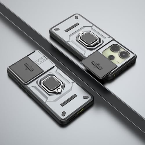 UNBLACK - جراب موبايل من انبلاك متوافق مع ريدمي نوت 14 شبكة الجيل الرابع 4G من البولي يوريثين الحراري + جراب موبايل مضاد للصدمات من البولي كربونات مع حلقة معدنية مقاومة للصدمات لموبايل ريدمي نوت 14 4G (رمادي)