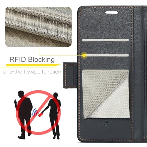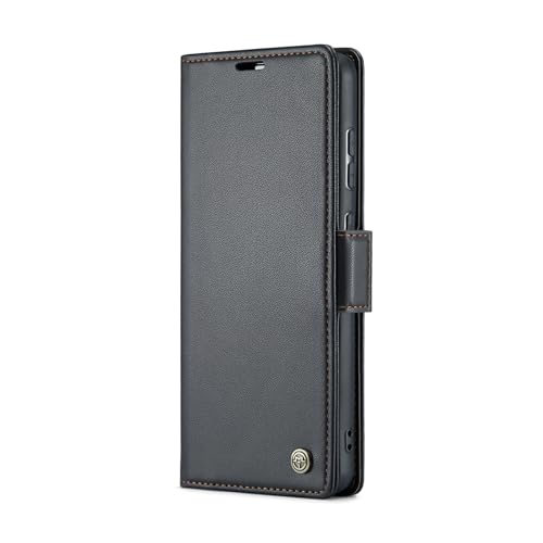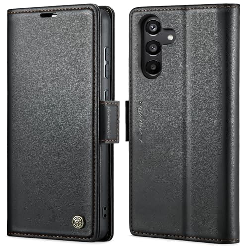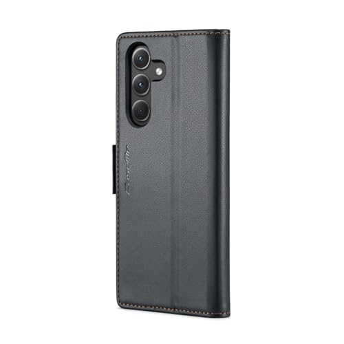 Generic - جراب موبايل فاخر جلد صناعي مضاد لبصمات الأصابع مع فتحة للبطاقات وحامل ومحفظة لموبايل سامسونج جالاكسي A35 من انبلاك - لون أسود - 023