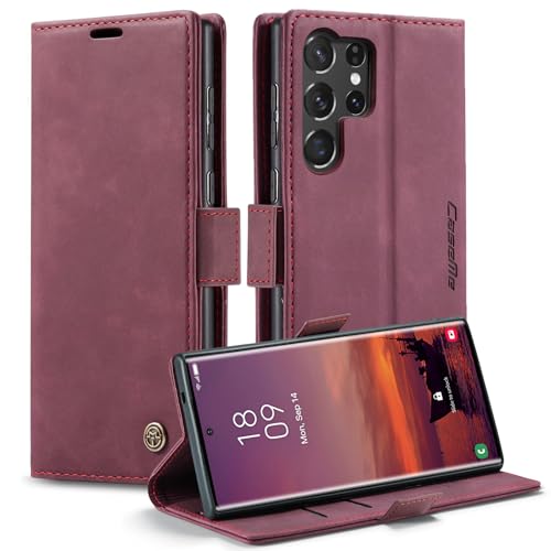 UNBLACK - جراب موبايل من الجلد الصناعي بتصميم 013 وغطاء قابل للطي بفتحة للكروت، لموبايل سامسونج جالاكسي S25 الترا من ان بلاك (أحمر)