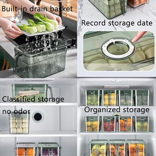 VElae - سلة تخزين للمطبخ غير قابلة للكسر، حاويات تخزين للثلاجة قابلة للتكديس مع مقبض، صندوق تخزين الثلاجة مع اغطية للخضروات والفواكه والتوت (اخضر-L)