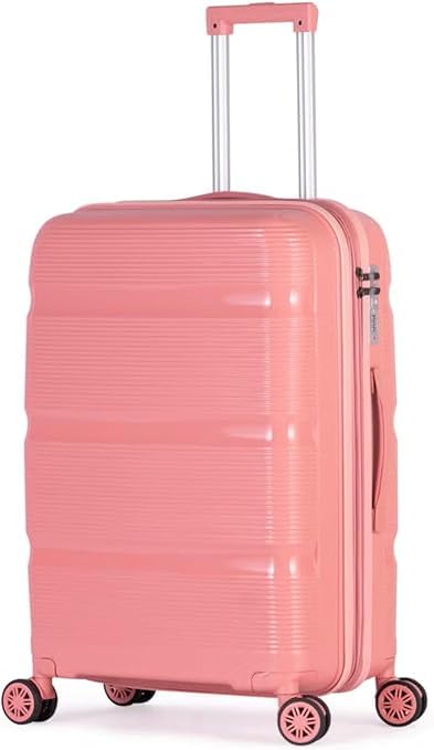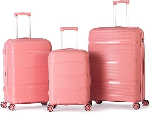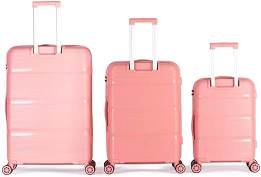 Generic - شنط سفر من السيليكون غير قابلة للكسر مع قفل تي اس ايه وسحاب مزدوج قابل للتوسيع و4 عجلات دوارة صامتة، مجموعة من 3 قطع، بينك-روز، مقاس L 20/24/28، زهري
