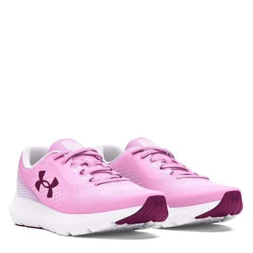 Under Armour - اندر ارمور حذاء رياضي تشارجد روج 4 للبنات من الصف المدرسي، (600) ستيلار بينك/ابيض/ارجواني برج الجوزاء، مقاس 4 للاطفال الكبار