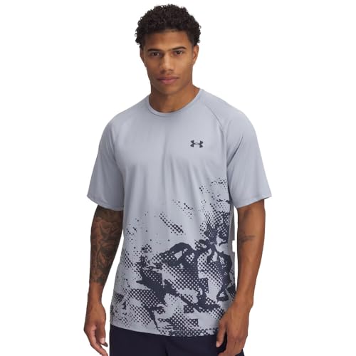 Under Armour - اندر ارمور تي شيرت تيك فيد للرجال، مقاس S، لون ازرق هاربور/ رمادي داونبور/ رمادي داونبور