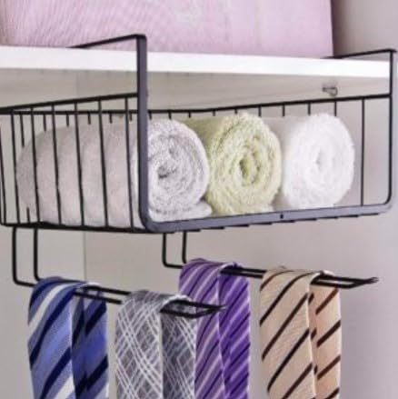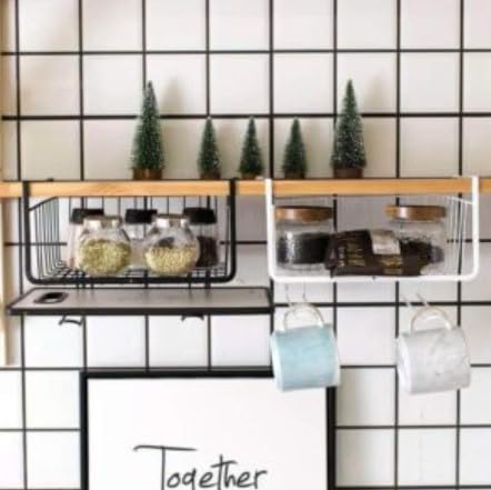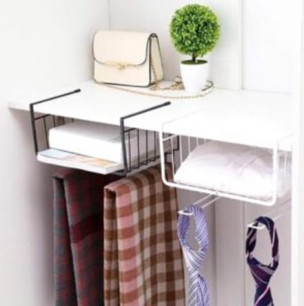 Generic - سلة تخزين تحت الدولاب منظم رفوف معلق بسلك معدني، لون أسود