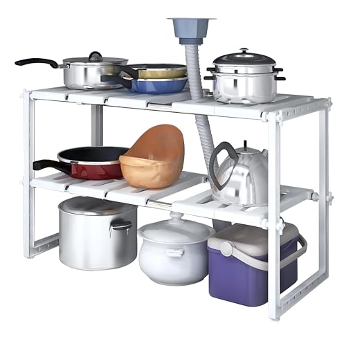 - 【رف تحت الحوض قابل للتمدد】: بارتفاع 40 سم × عرض 30 سم × طول 50 ~ 70 سم، يناسب الرف معظم كابينة تحت الحوض، مما يوفر مساحة المطبخ بفعالية.