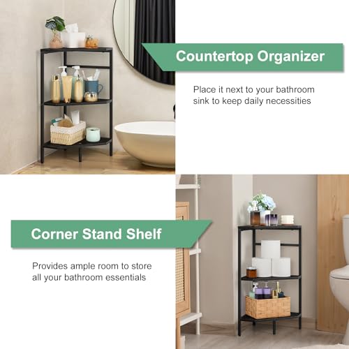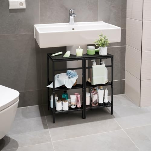 Luplom - رف تخزين تحت الحوض يوضع تحت الحوض، منظم للحمام وحامل ورف تخزين تحت طاولة الزينة، رف زاوية خشبي وحامل تخزين للمرحاض، لون أسود