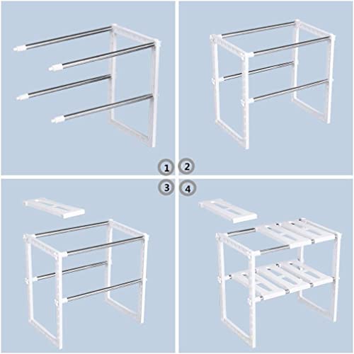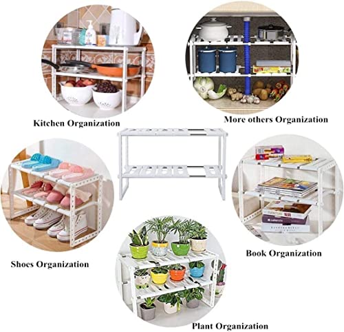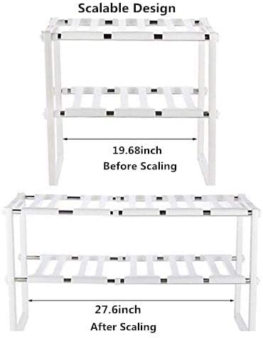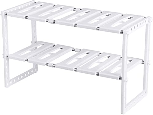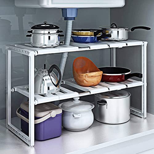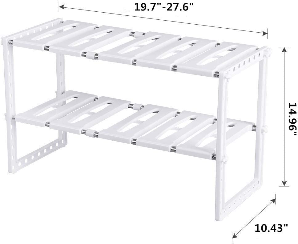 Generic - منظم تحت الحوض بدورين وقابل للتوسيع، رف تخزين للمطبخ والحمام ودولاب الخزين، متعدد الوظائف وشديد التحمل، ابيض