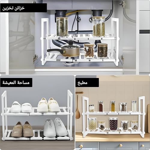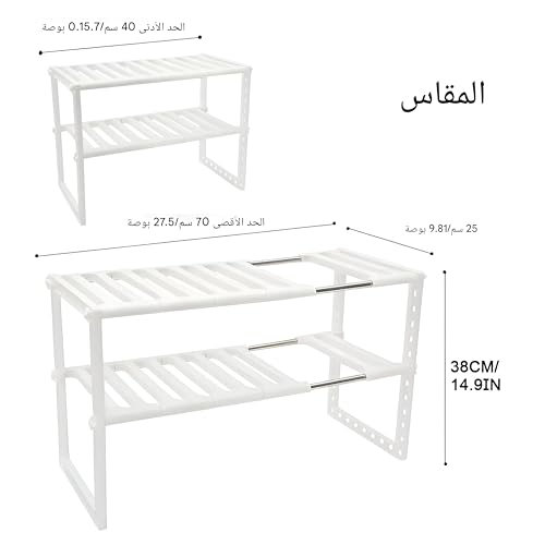 Generic - منظم تحت أحواض الغسيل - رف مدمج قابل للتمديد من طبقتين مع أنابيب من الفولاذ المقاوم للصدأ لتخزين المطبخ والحمام، قابل للتعديل 43-73 سم، قاعدة 25×38.5 سم
