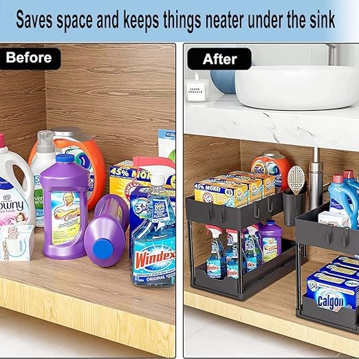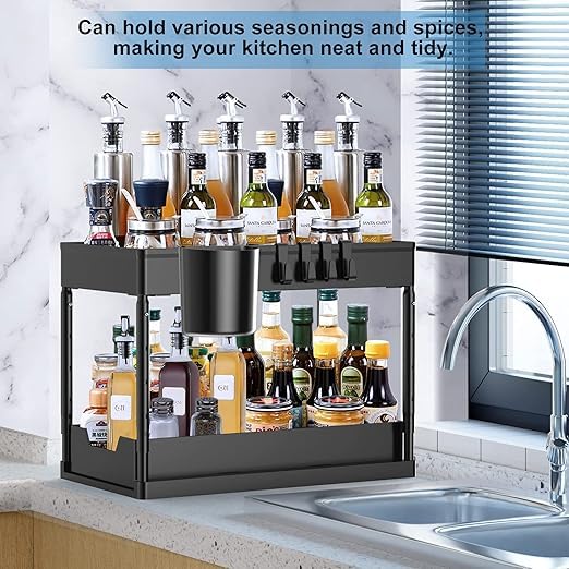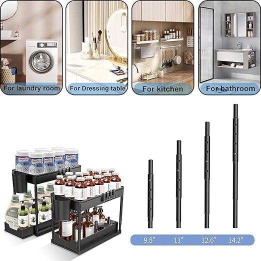 - 【توفير المساحة】: حل التخزين هذا تحت الحوض مثالي لكل من المطابخ والحمامات. خيارات منظم المطبخ تحت الحوض ومنظم الحمام تحت الحوض تجعل من السهل زيادة مساحتك.