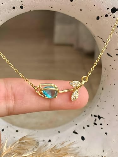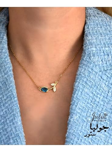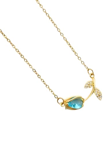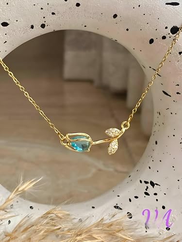 Generic - اندراندينج - قلادة انيقة بتصميم زهرة التيوليب مصنوعة من الستانلس ستيل الصلب مع لمسة ذهبية براقة وزخرفة مينا زرقاء، مع سلسلة ربط رفيعة لتكون هدية مثالية للنساء