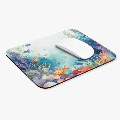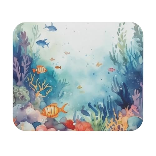 Generic - قاعدة ماوس 283 بتصميم شعاب مرجانية تحت الماء، مشهد محيط ملون مع سمكة استوائية للألعاب والمكتب متينة وناعمة وغير قابلة للانزلاق