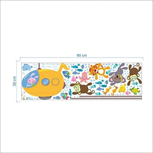 Generic - ملصق حائط لقياس طول الأطفال بتصميم قرد ونمر وسمكة وغواصة تحت الماء لغرفة الأطفال والجدار والطاولة لمتابعة النمو