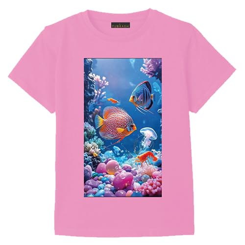 Generic - تي شيرت بطبعة سمكة المحيط تحت الماء، قطن بينك، تصميم استوائي، مقاس الاطفال، من 3 الى 12 سنة