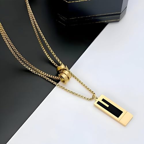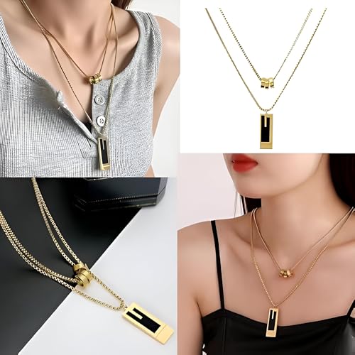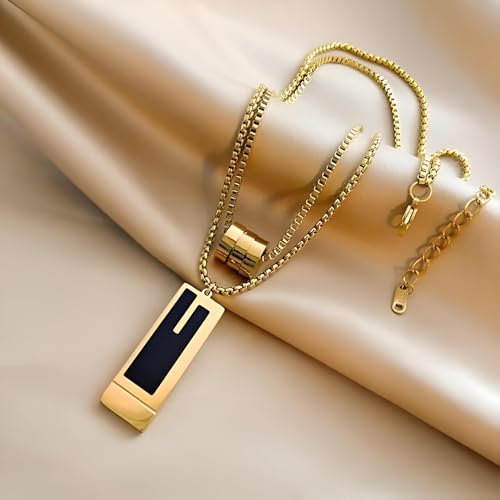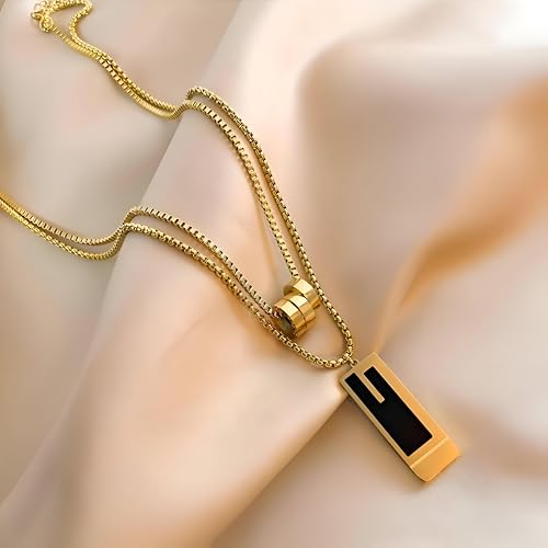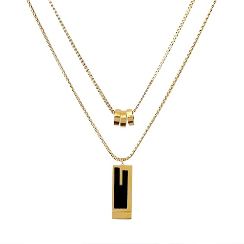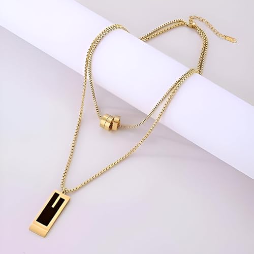 Generic - اندهوف - تصميم مستطيل مزدوج انيق مع سلسلة 50 سم، وصلة بطول 7.5 سم، يتميز بلمسة سوداء انيقة للاستخدام اليومي والمناسبات الخاصة
